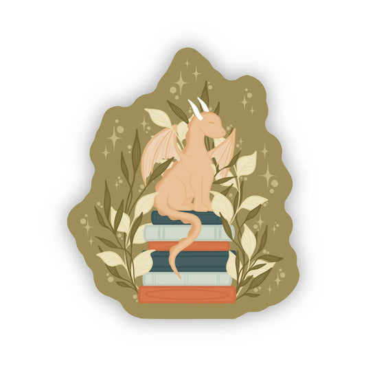 Littlest Book Dragon Bookstack Waterproof Vinyl Sticker | 3" x2.6"