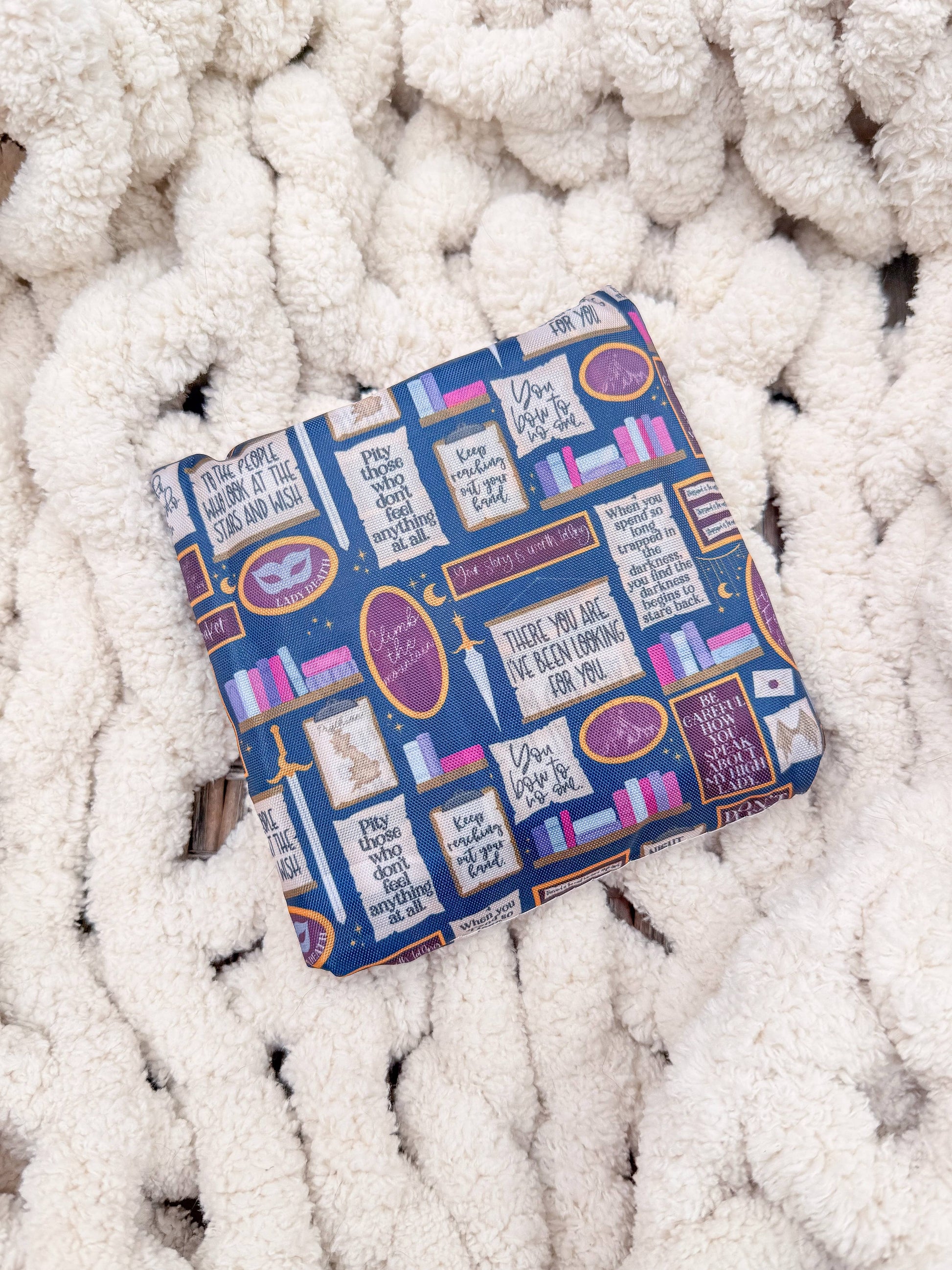 This reusable bookish foldable grocery tote bag is perfect for bookstore trips and everyday errands alike. They are super sturdy and can easily hold up to 50lbs so you know it can hold those heavy book hauls.