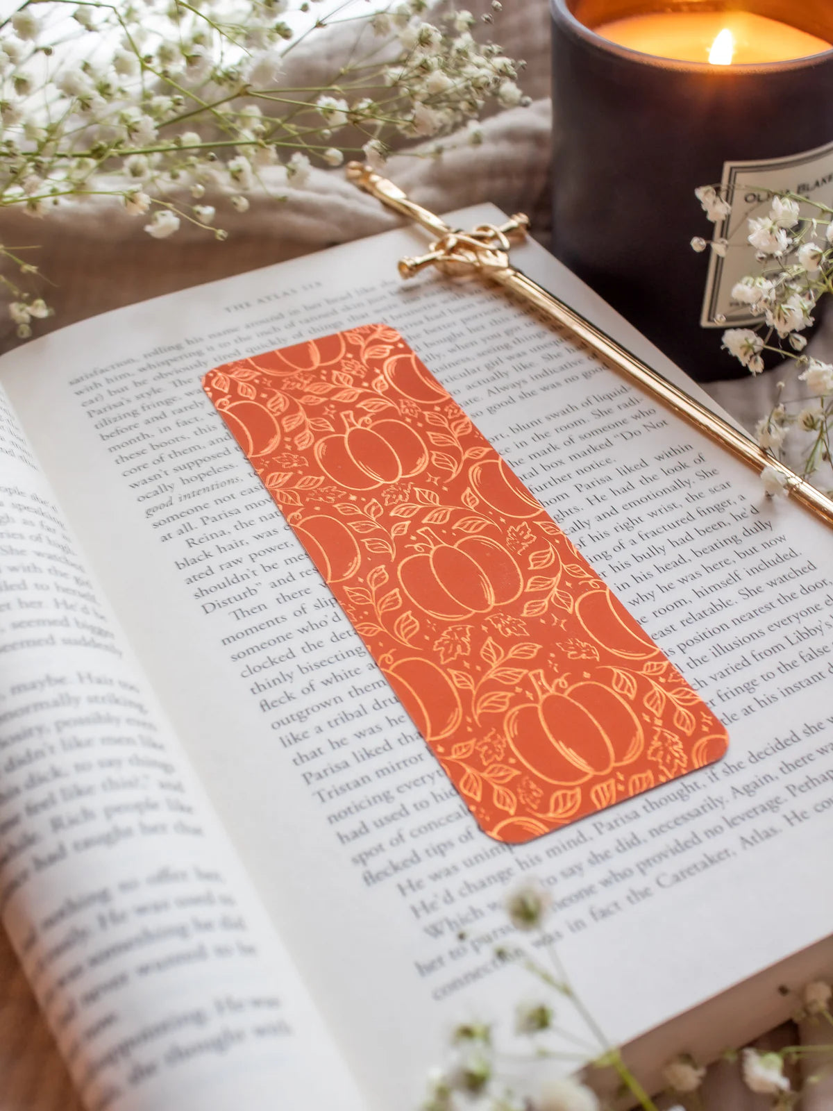 Autumn Orange Foil Bookmark | Harvest Pumpkins