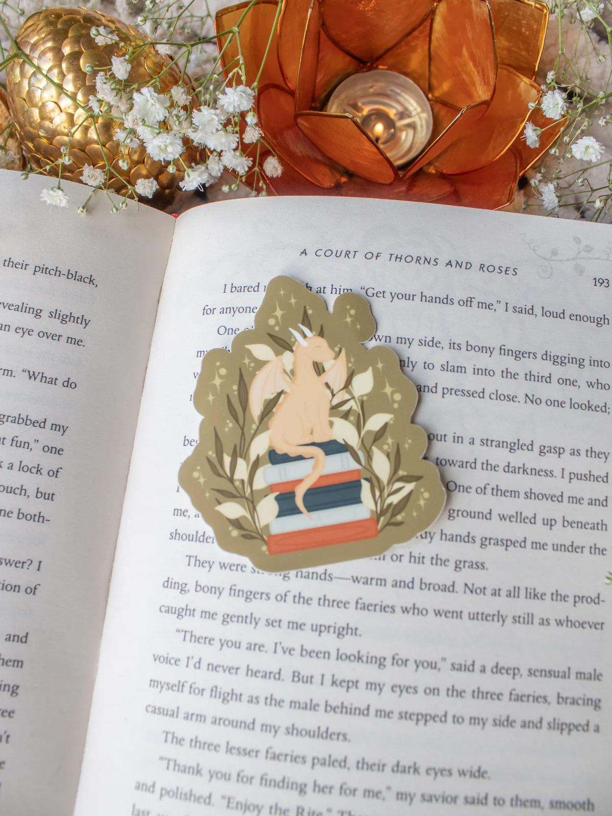 Littlest Book Dragon Bookstack Waterproof Vinyl Sticker | 3" x2.6"