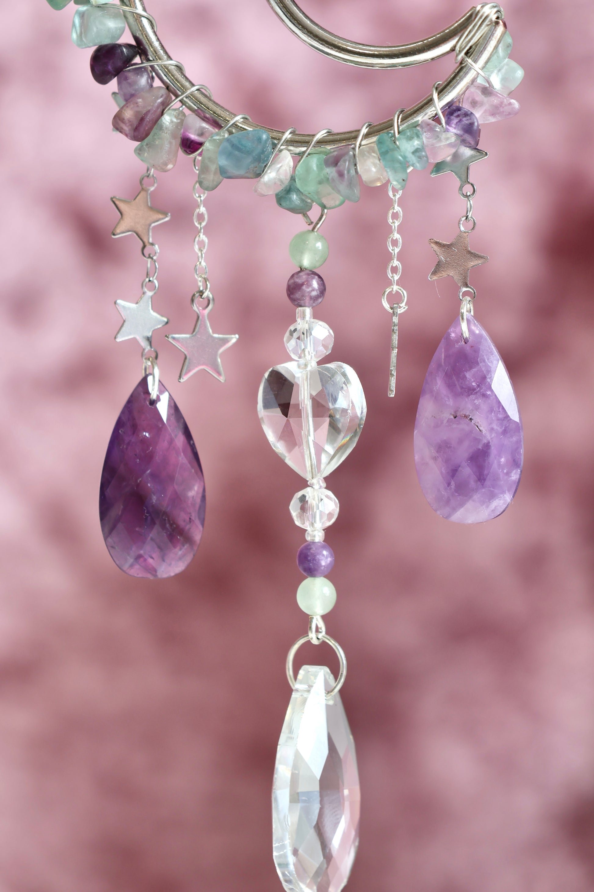 This Sun Catcher has a beautiful mix of Fluorite & Amethyst. 100% guaranteed to bring those good vibes ;)