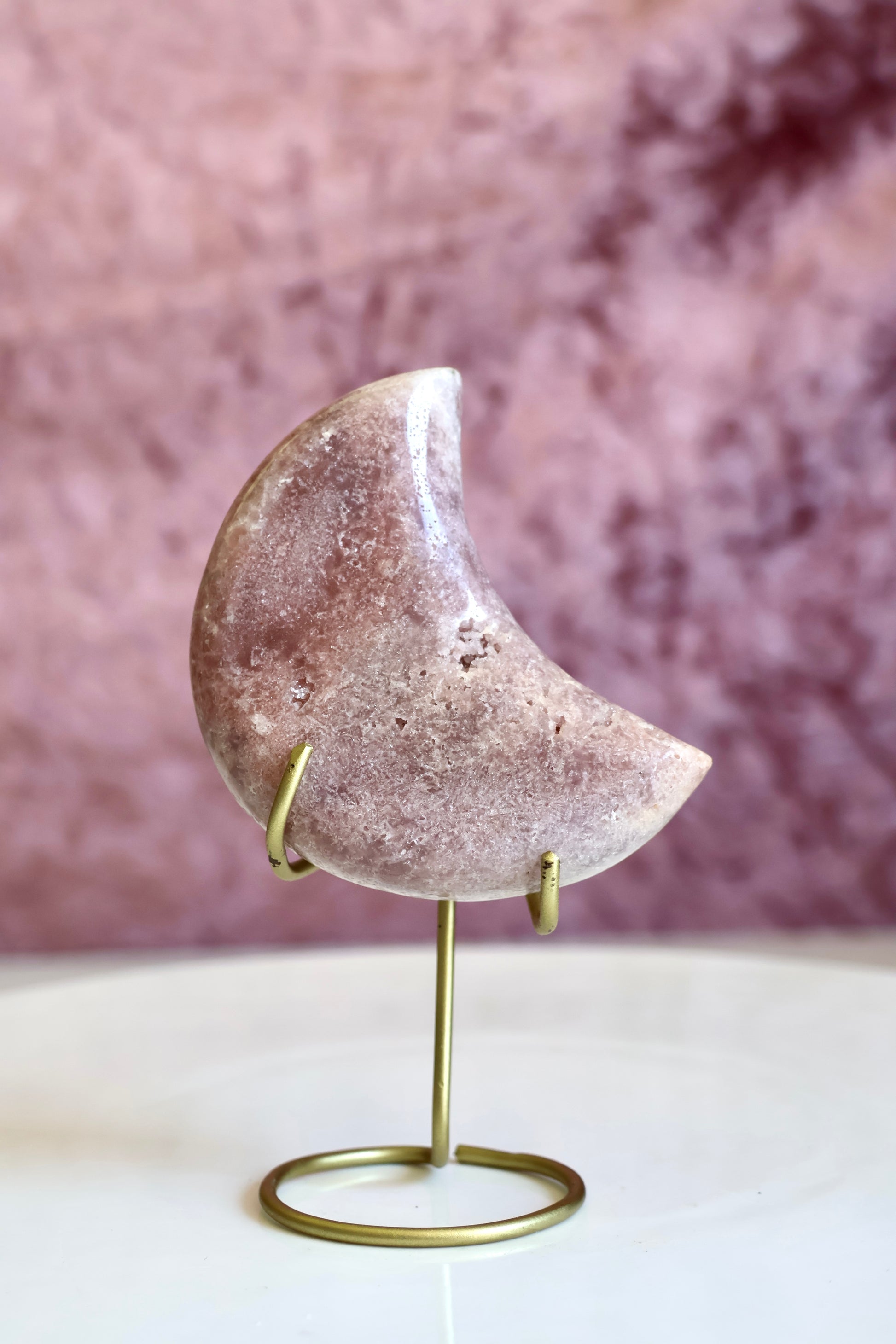 Pink Amethyst Moon on a gold stand