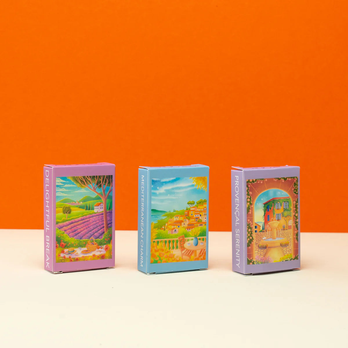 This mini puzzle of 99 pieces invites you to discover the beauty of a small village nestled in the Luberon. At the heart of this picturesque scene, an ancient fountain stands, surrounded by cobbled streets and stone houses. The illustration captures the serene and authentic atmosphere of Provence, where rustic charm and tranquility meet to offer a captivating glimpse of village life.