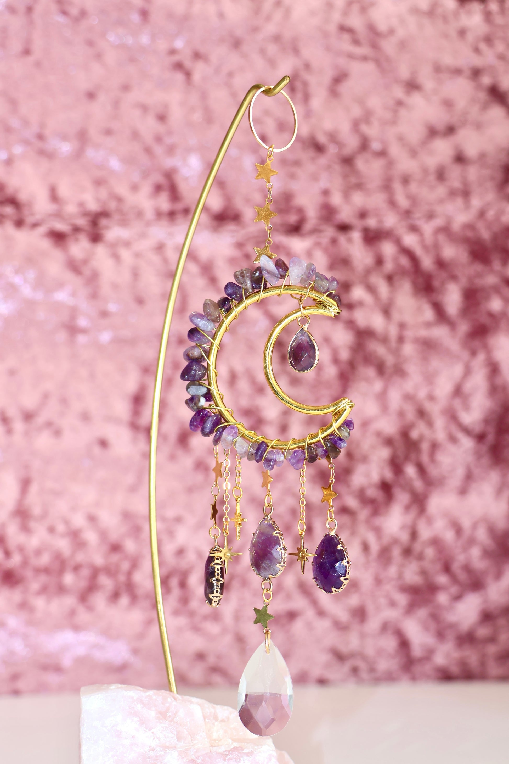 Raw Rose Quartz base with gold hook suitable for our smaller sized ($35) sun catchers