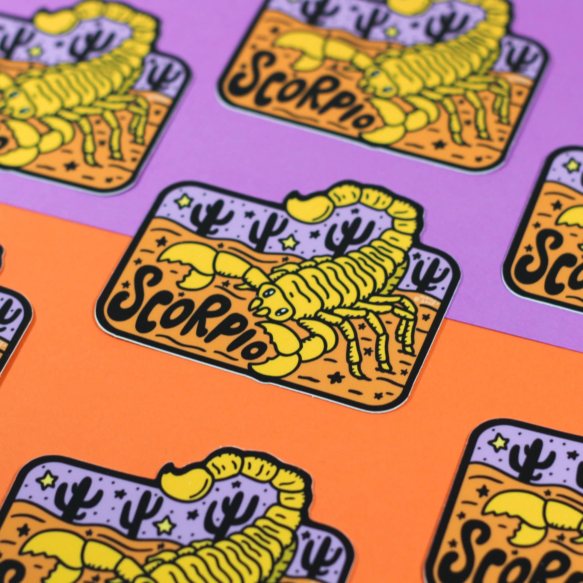 Here’s a sticker for our spicy Scorpio friends! On it is a rad scorpion chilling on a desert night. We hope that it is to the liking for this determined, brave, ambitious, passionate, loyal, and focused sign! We love your zesty and vibrant vibes!